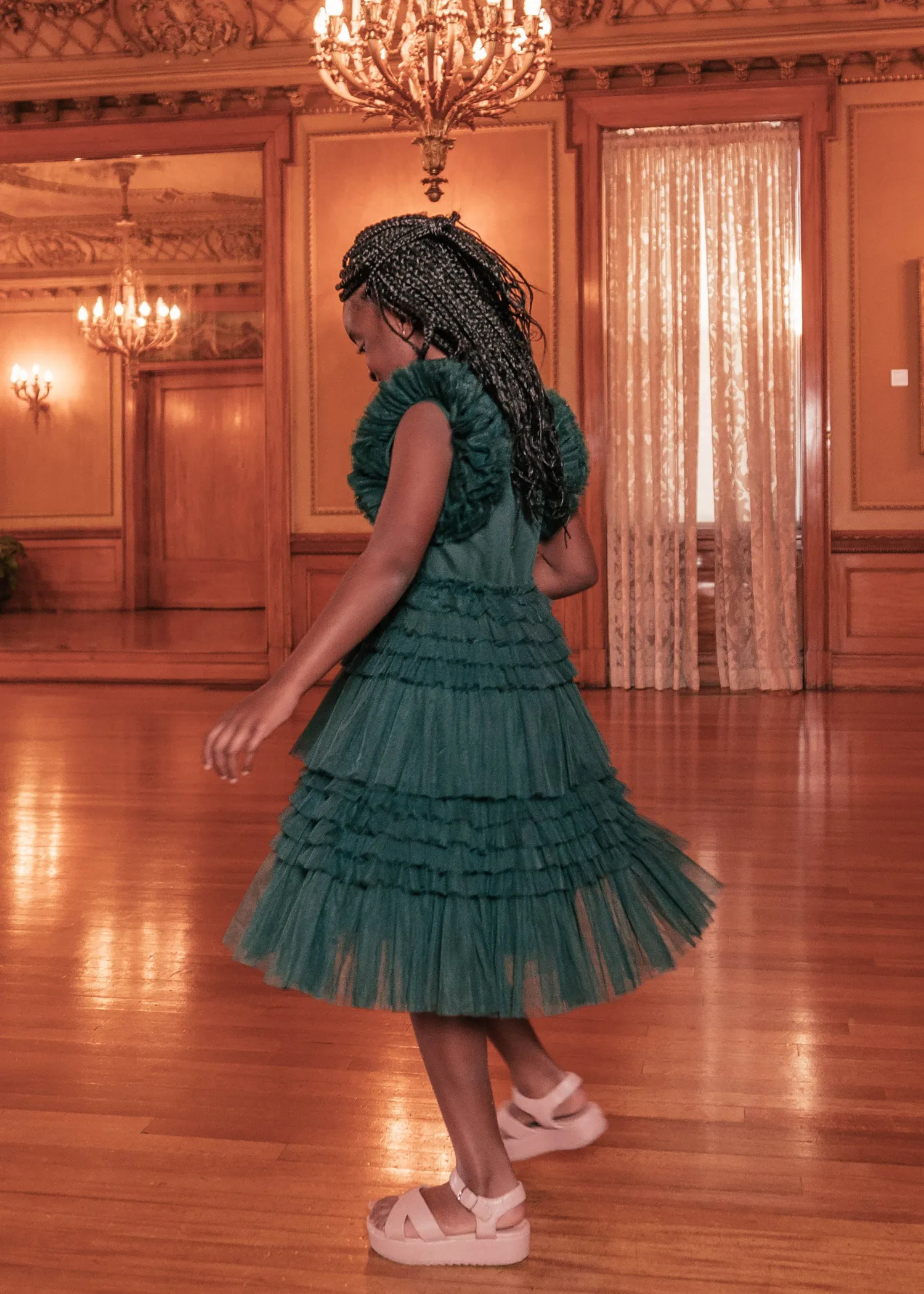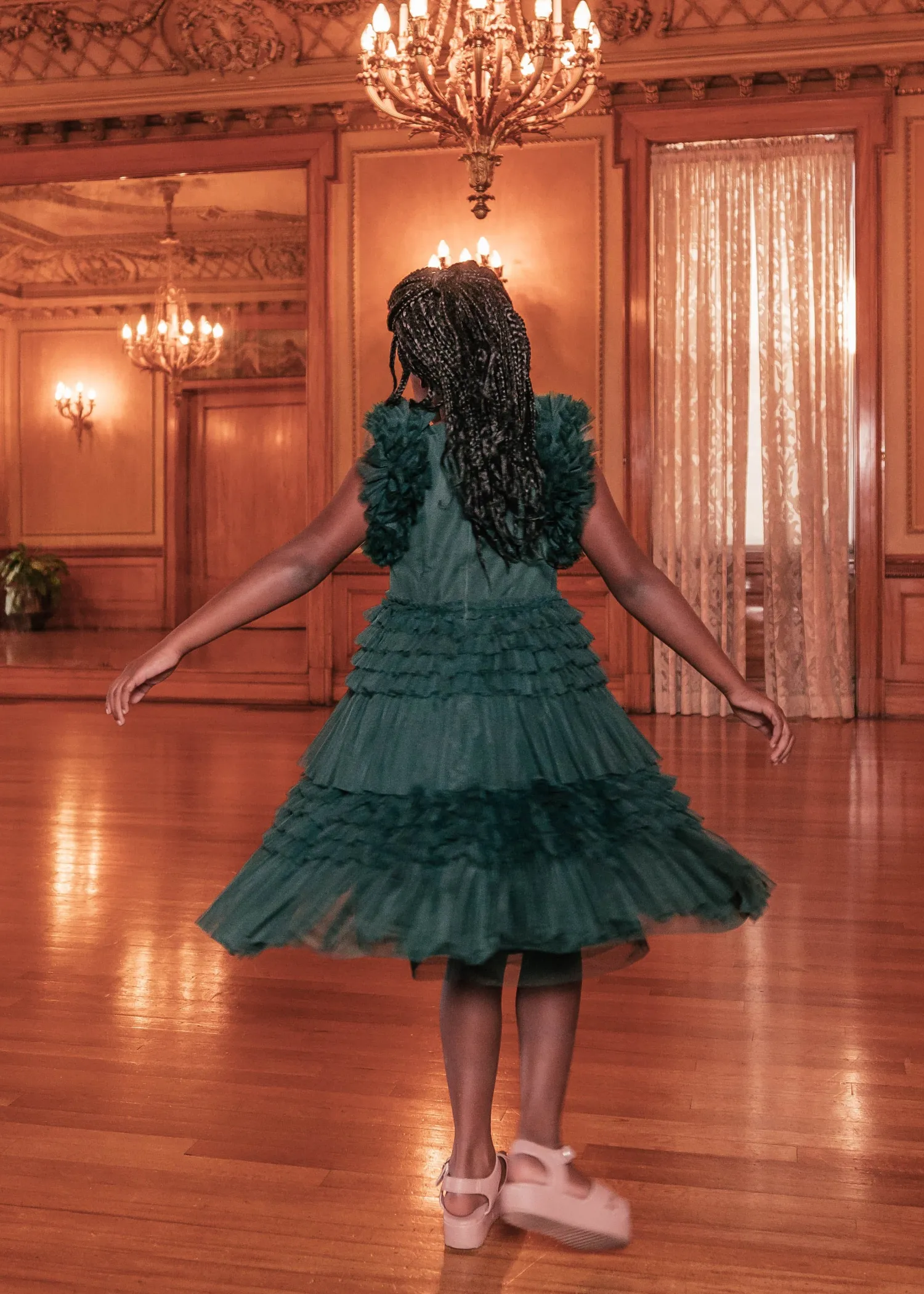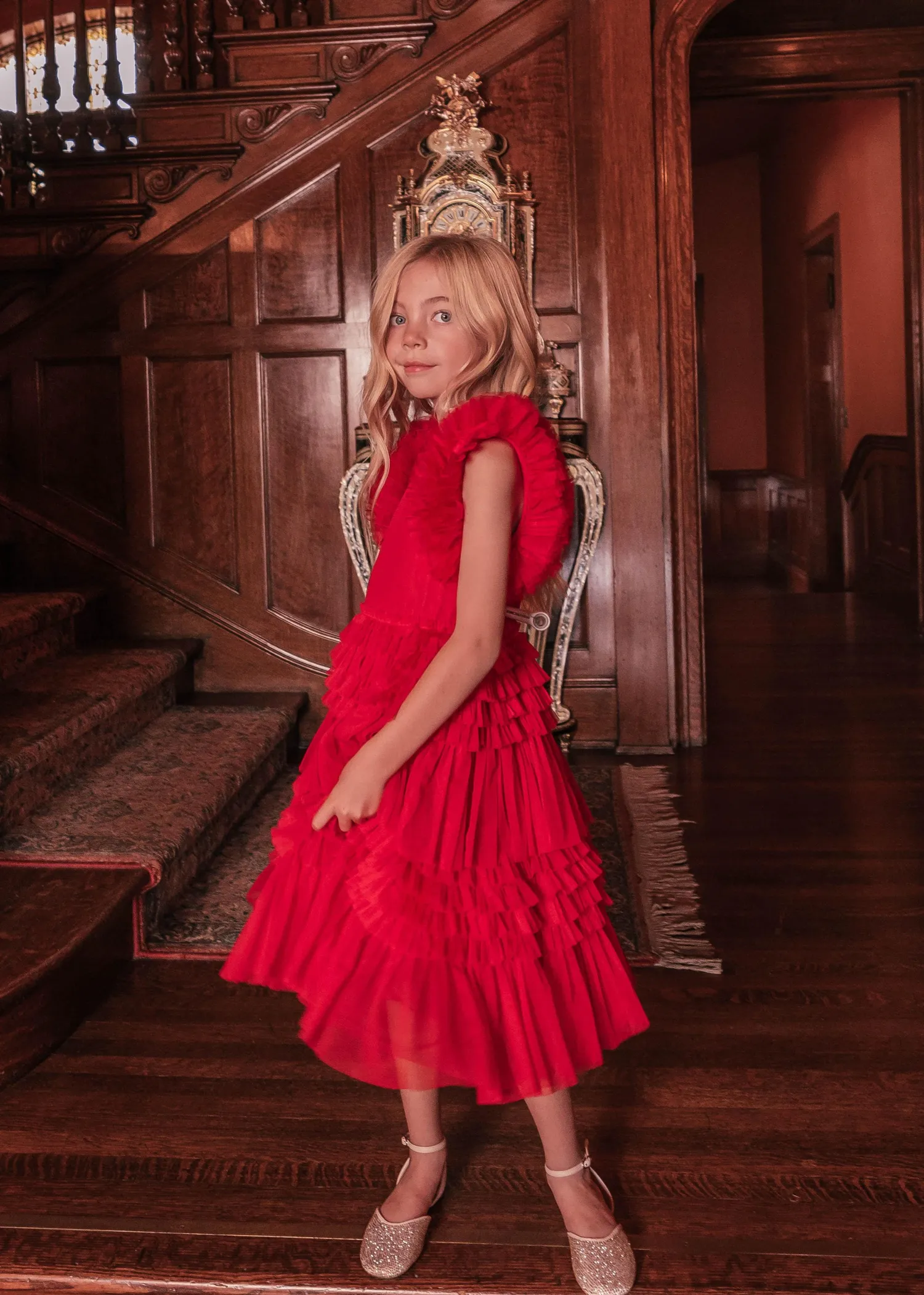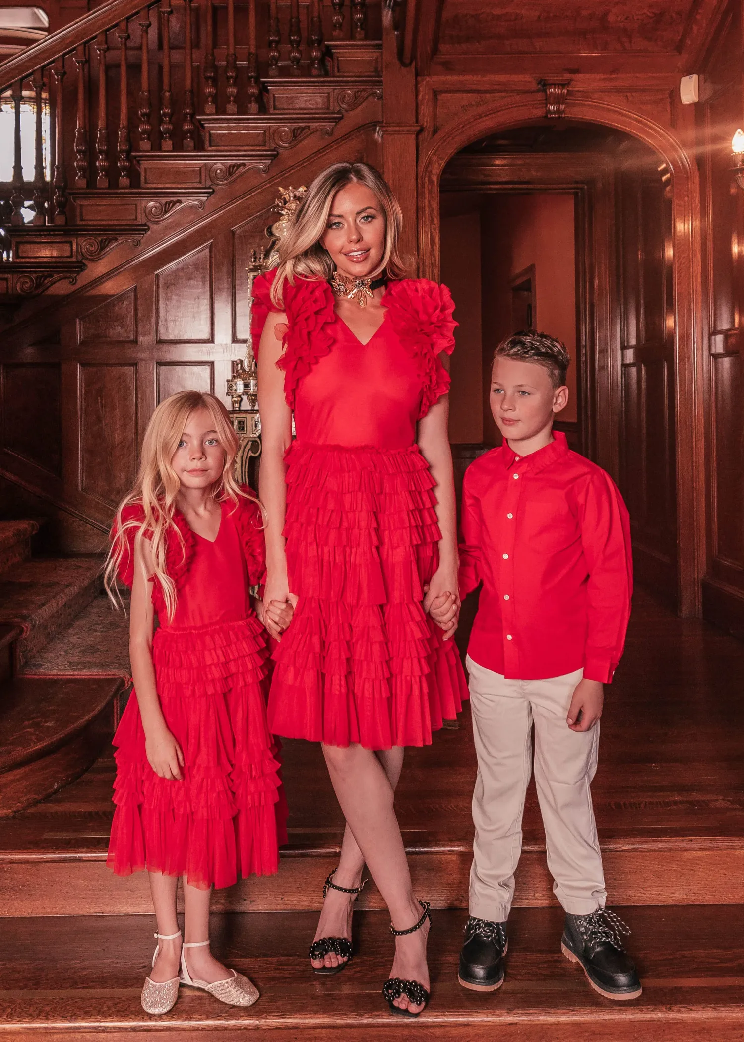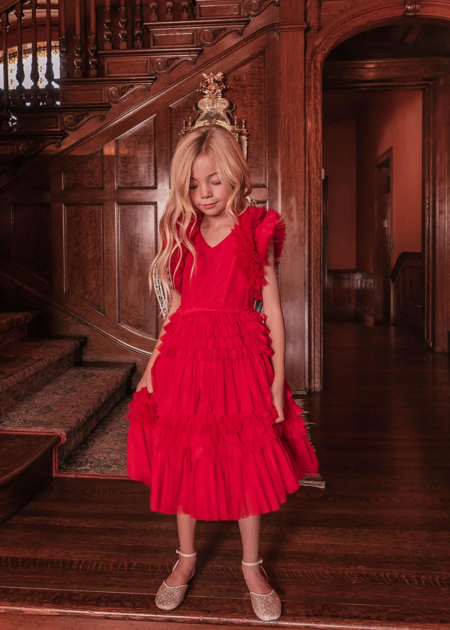 This show-stopper midi dress is sure to turn heads wherever you go and is the perfect twirl dress for your little girl. Featuring a v-neckline, ruffled tulle skirt, and sleeves, this gorgeous dress is perfect for all special occasions. Match with your cute babies for the ultimate mommy + me look.