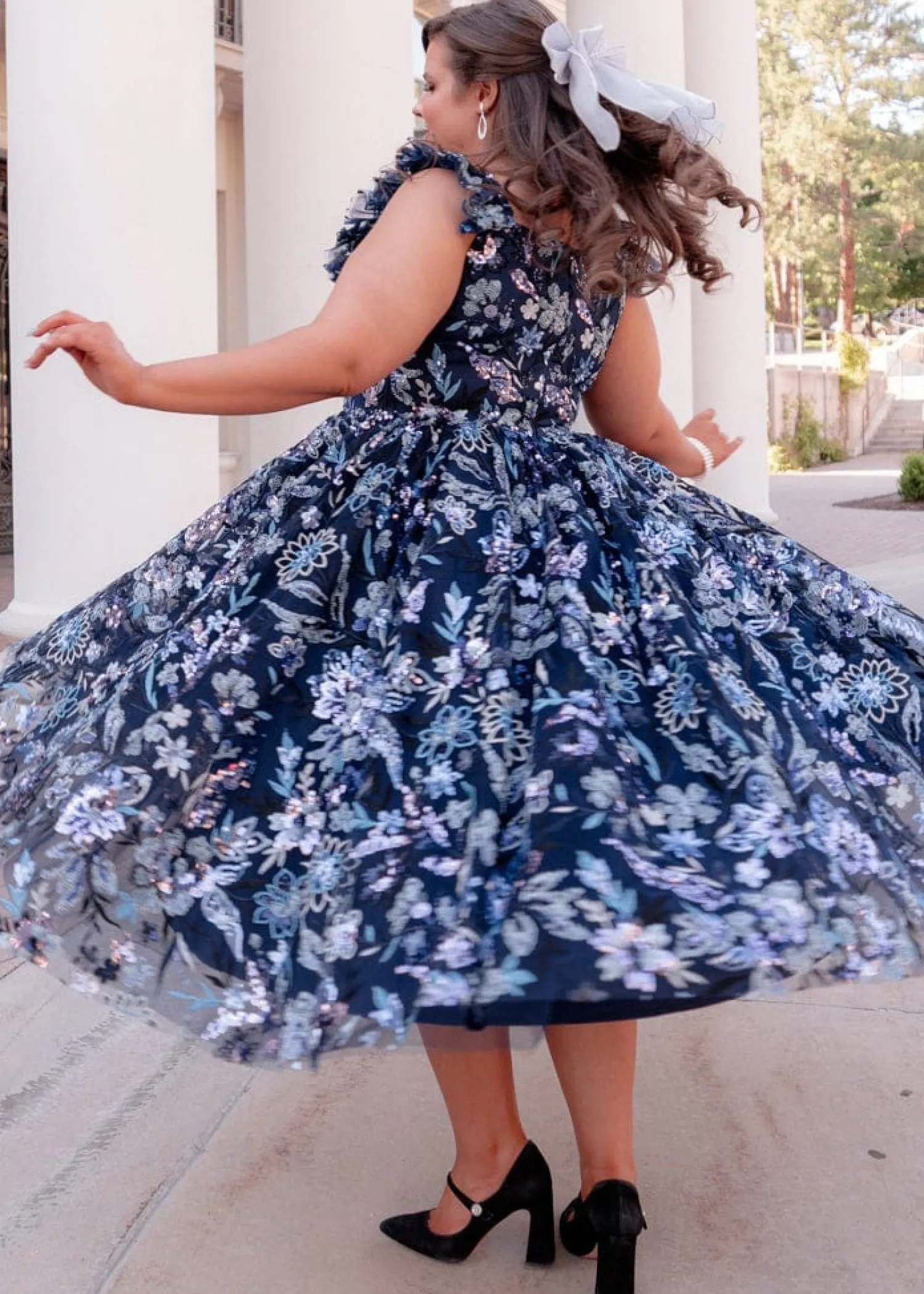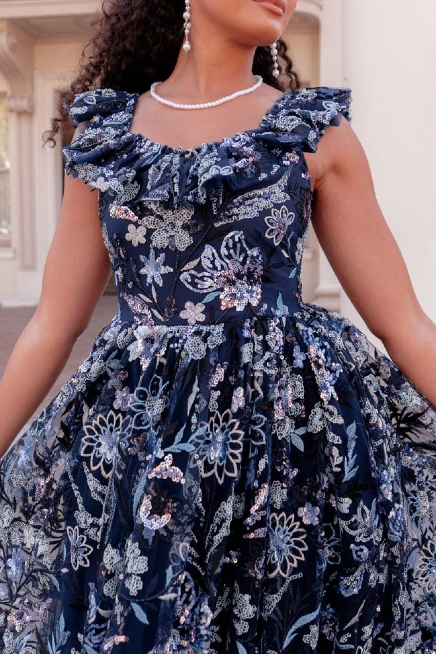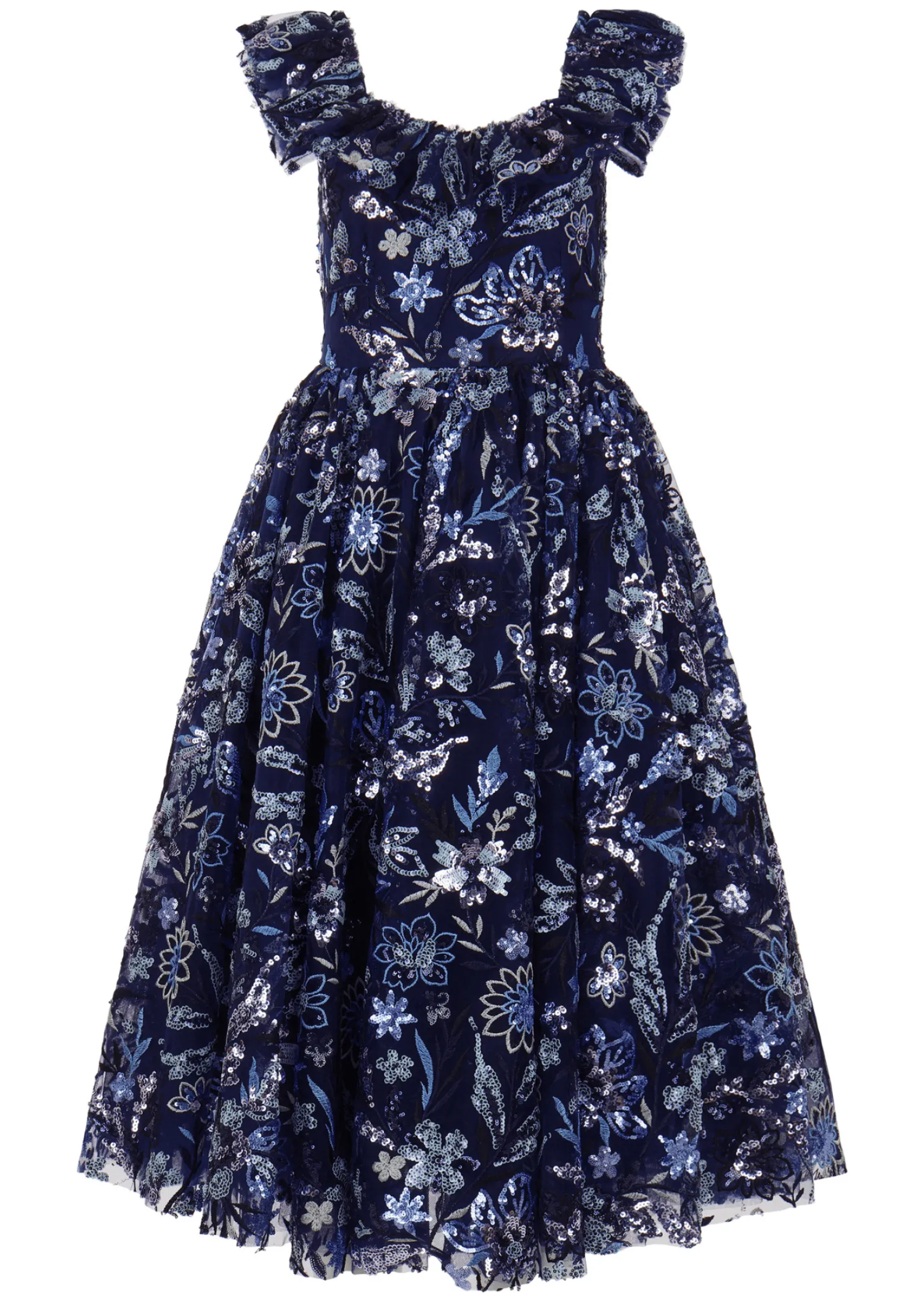 Dazzle this holiday season in our Chrissy Dress. This stunning blue dress is adorned with sparkling sequins that shimmer with every step, perfect for capturing the magic of the season. The romantic ruffle sweetheart neckline adds a touch of softness and elegance, while the fitted bodice enhances your silhouette. Whether you're attending a glamorous Christmas party, a festive family gathering, or ringing in the New Year, the Chrissy Dress promises to make you feel like the star of the show.