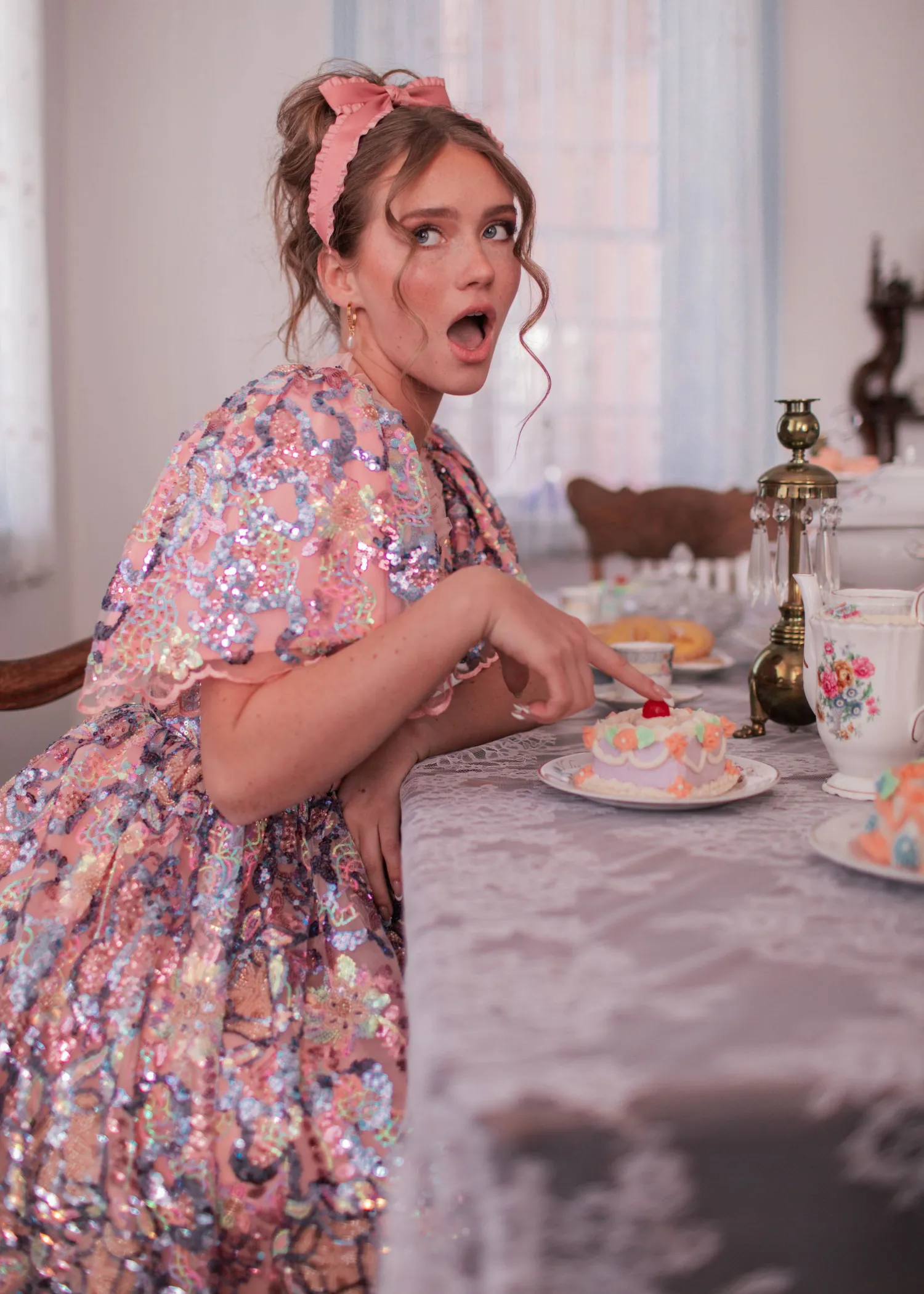 Sweet, sparkling, and absolutely irresistible – Decadence is a must-have look for those who believe in dressing up life's moments. It's dreamy shade of peach sets the stage for a mesmerizing display of sequins, turning every step into a shimmering dance. Perfect for twirling on the dance floor, a cocktail party, or a night out on the town.