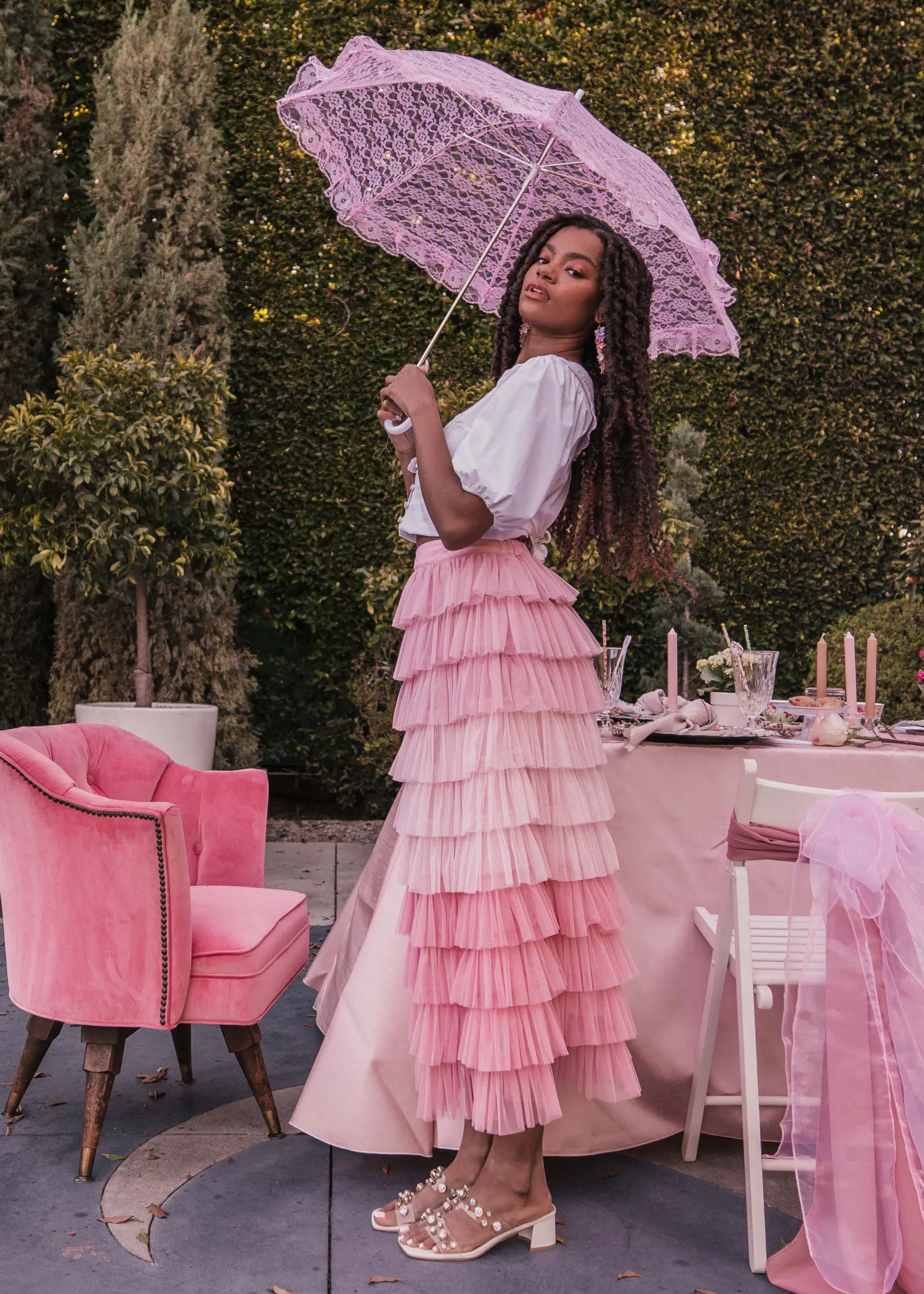 Ruffles never goes out of style and these fresh-for-spring pastel colors adds flair to our Falling Petals Skirt. This elevated, occasion A-line silhouette features an elastic waist to provide comfort. Fully lined.