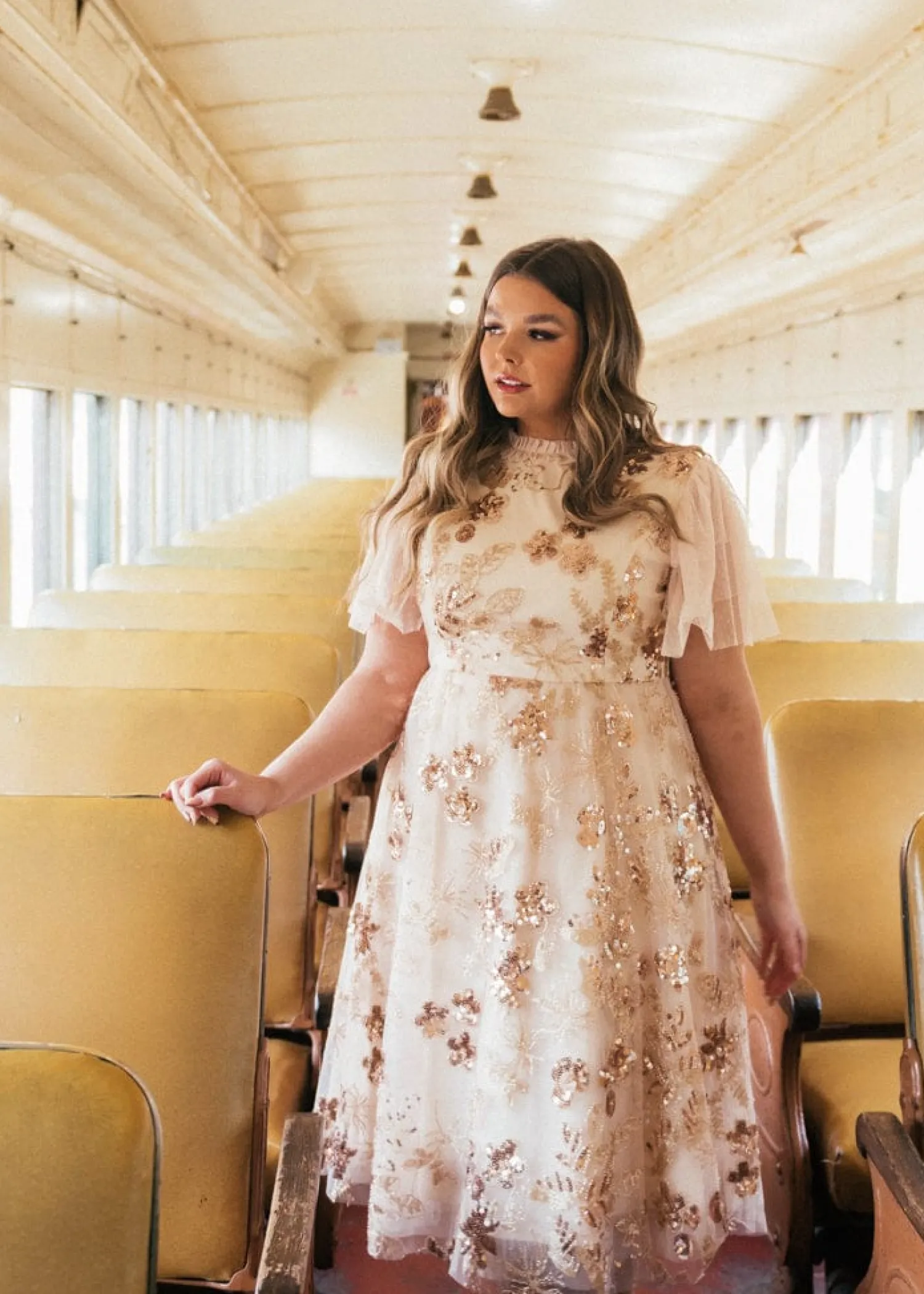 This glamorous midi is ready to make an entrance. From the beautiful sequins throughout to the swiss dots on the tiered sleeve, this dress has it all. Features a fitted waistline, tulle skirt, a hidden back zipper, and is fully lined. Get ready to turn heads at your festivities.