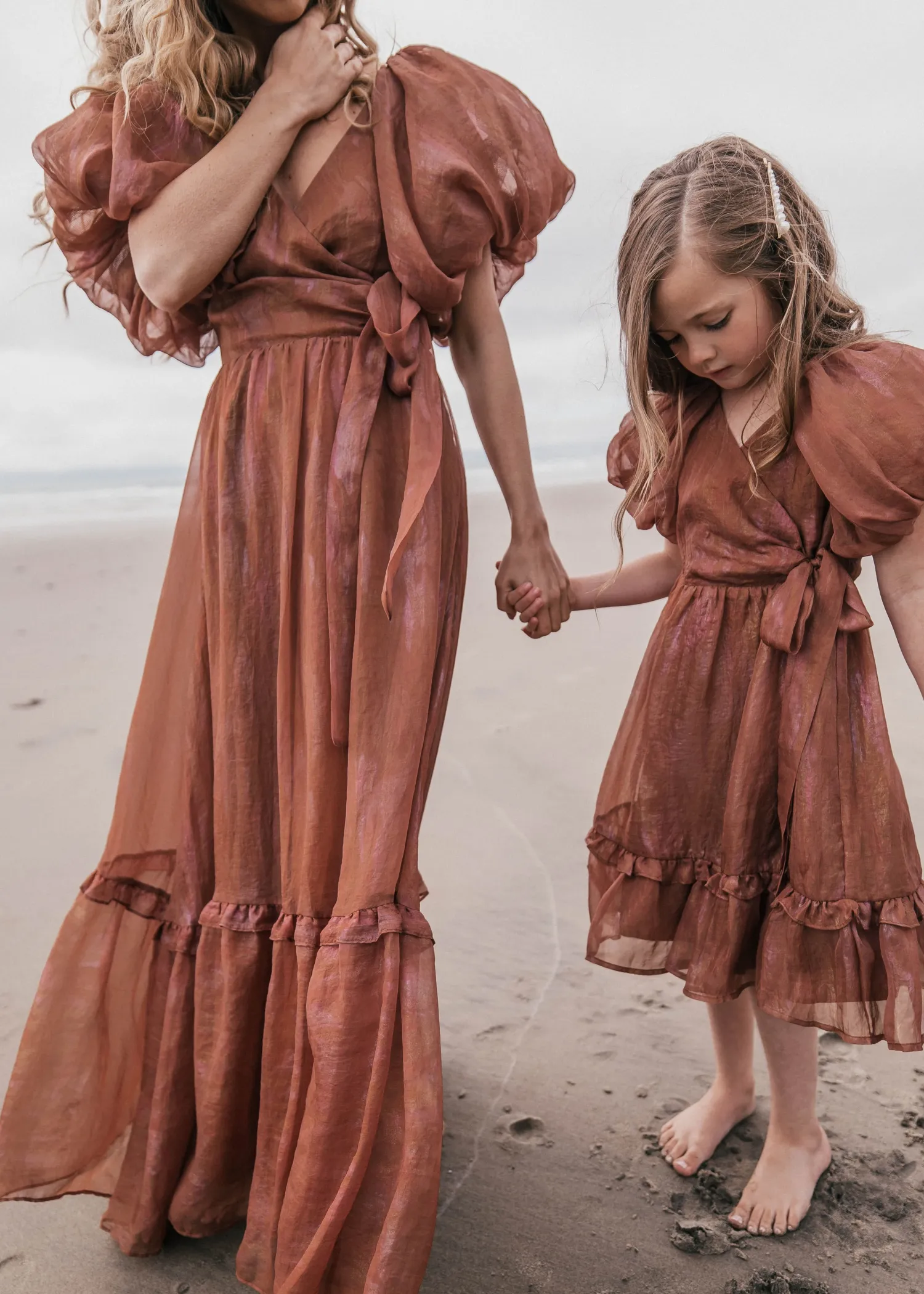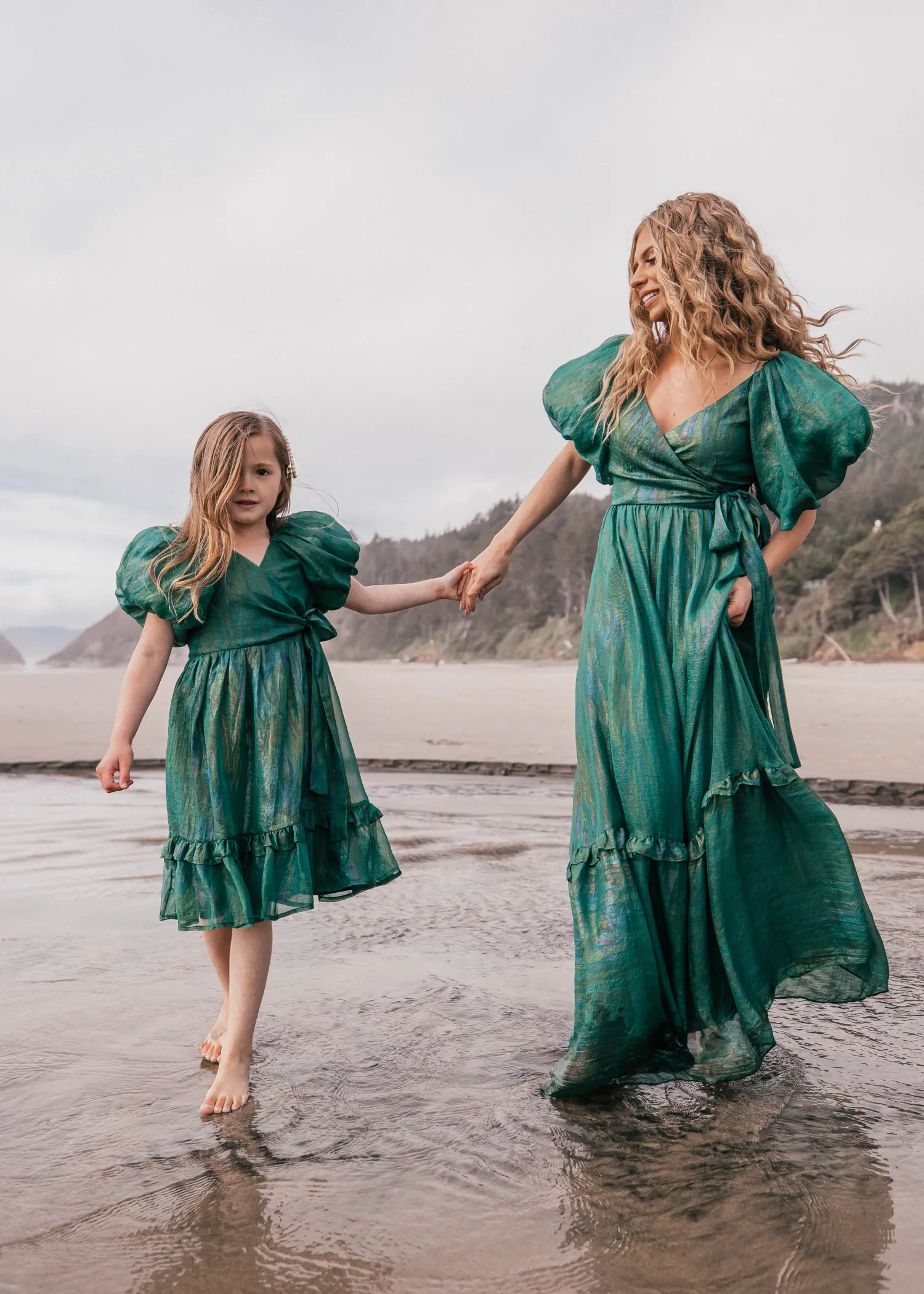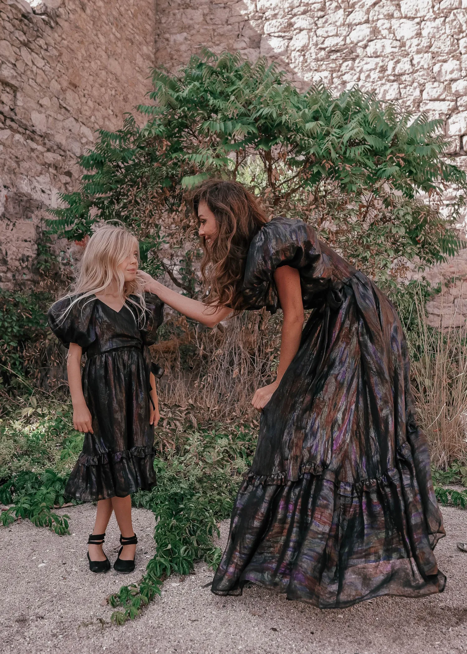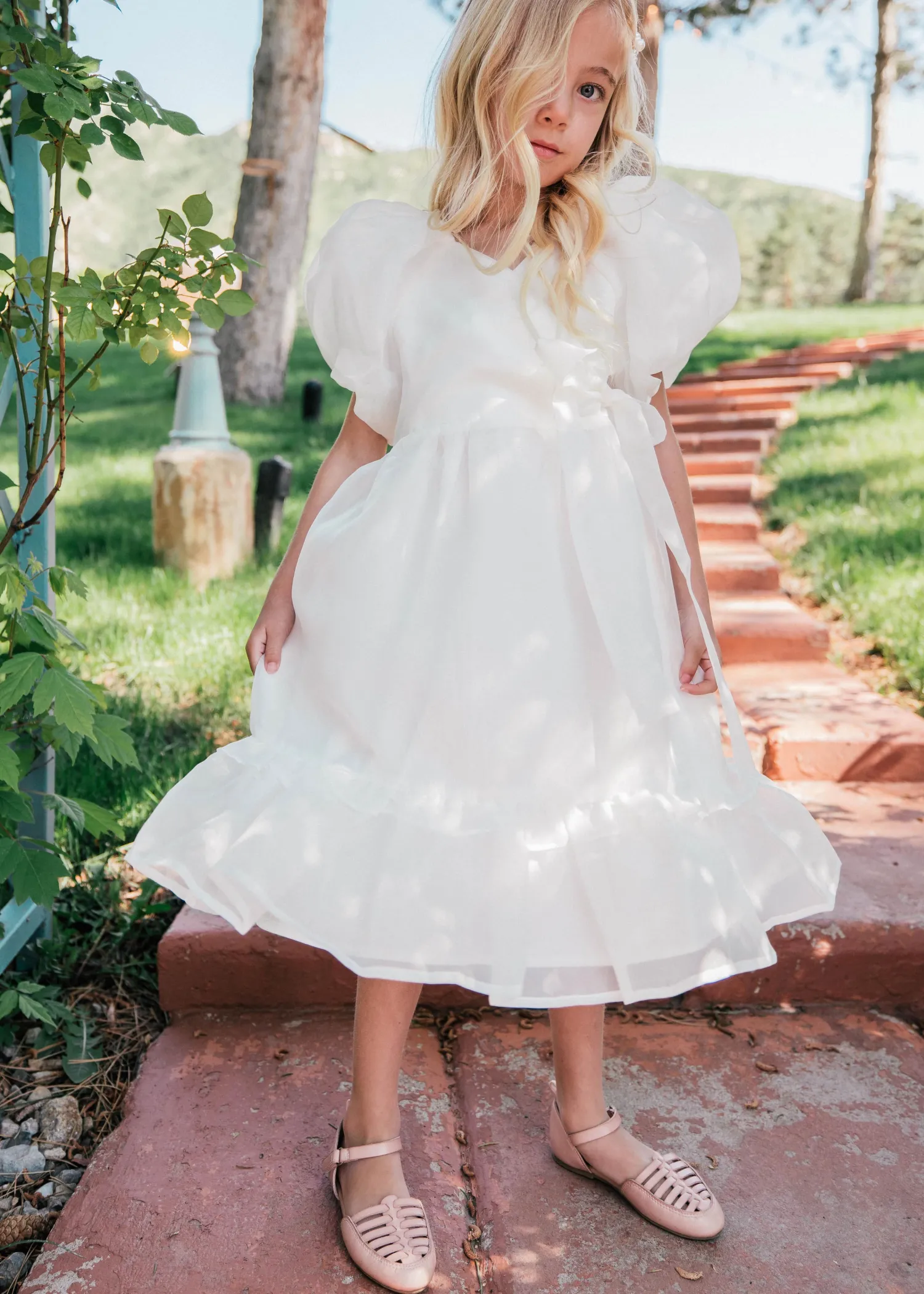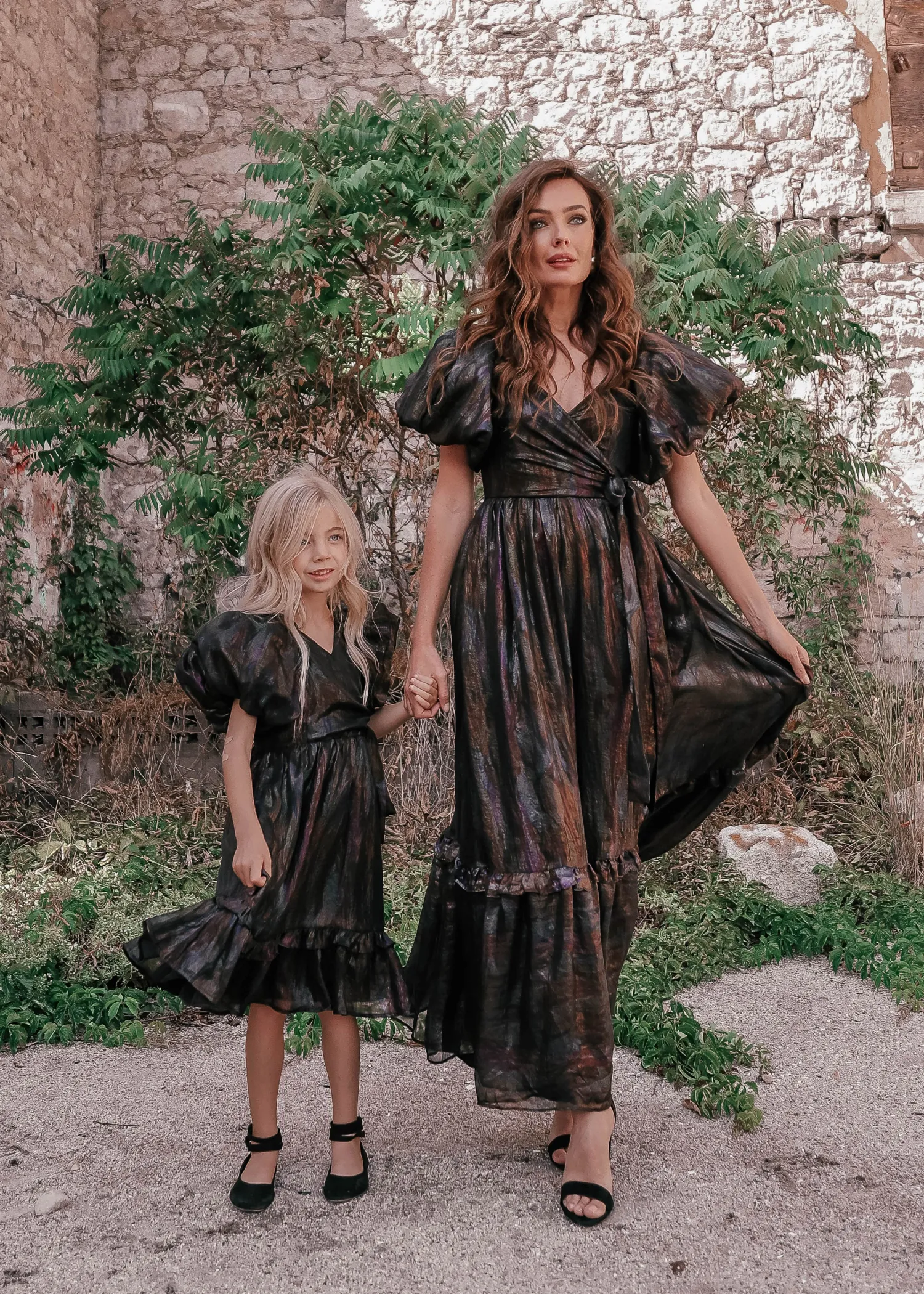 This dreamy, whimsical dress will be the perfect addition to any event. Its dreamy puff sleeve and flattering v-neckline are complemented by a twirl-worthy skirt, hidden side zipper, and fitted waistline. Fully lined. Match with your cute babies for the ultimate mommy + me look.