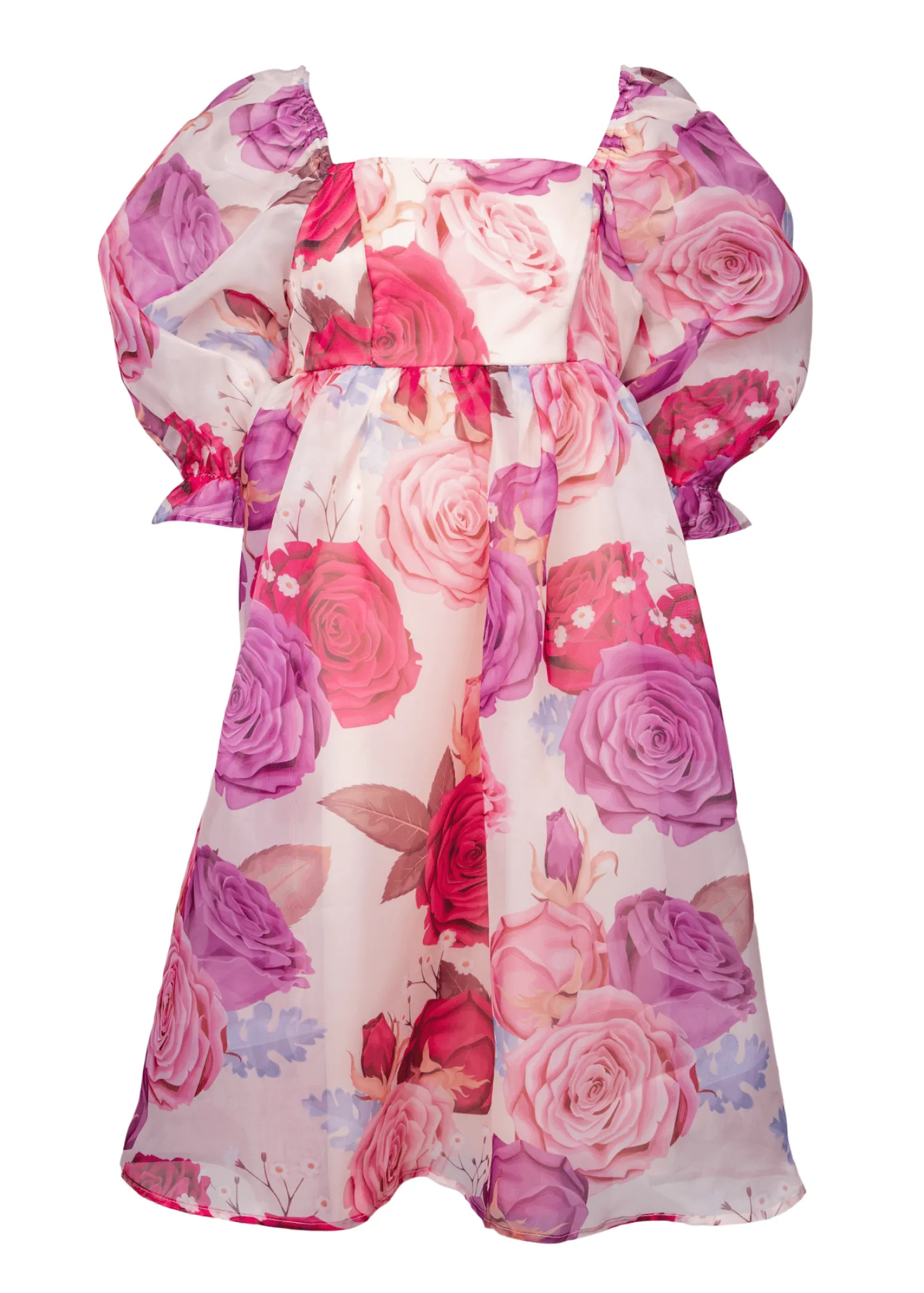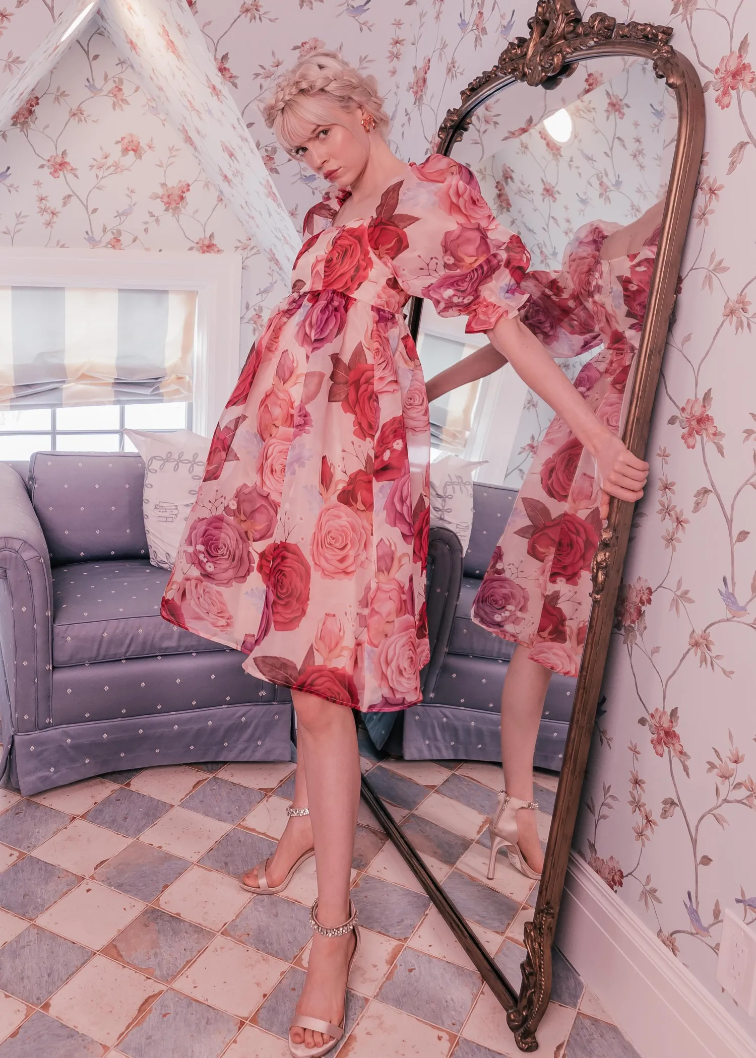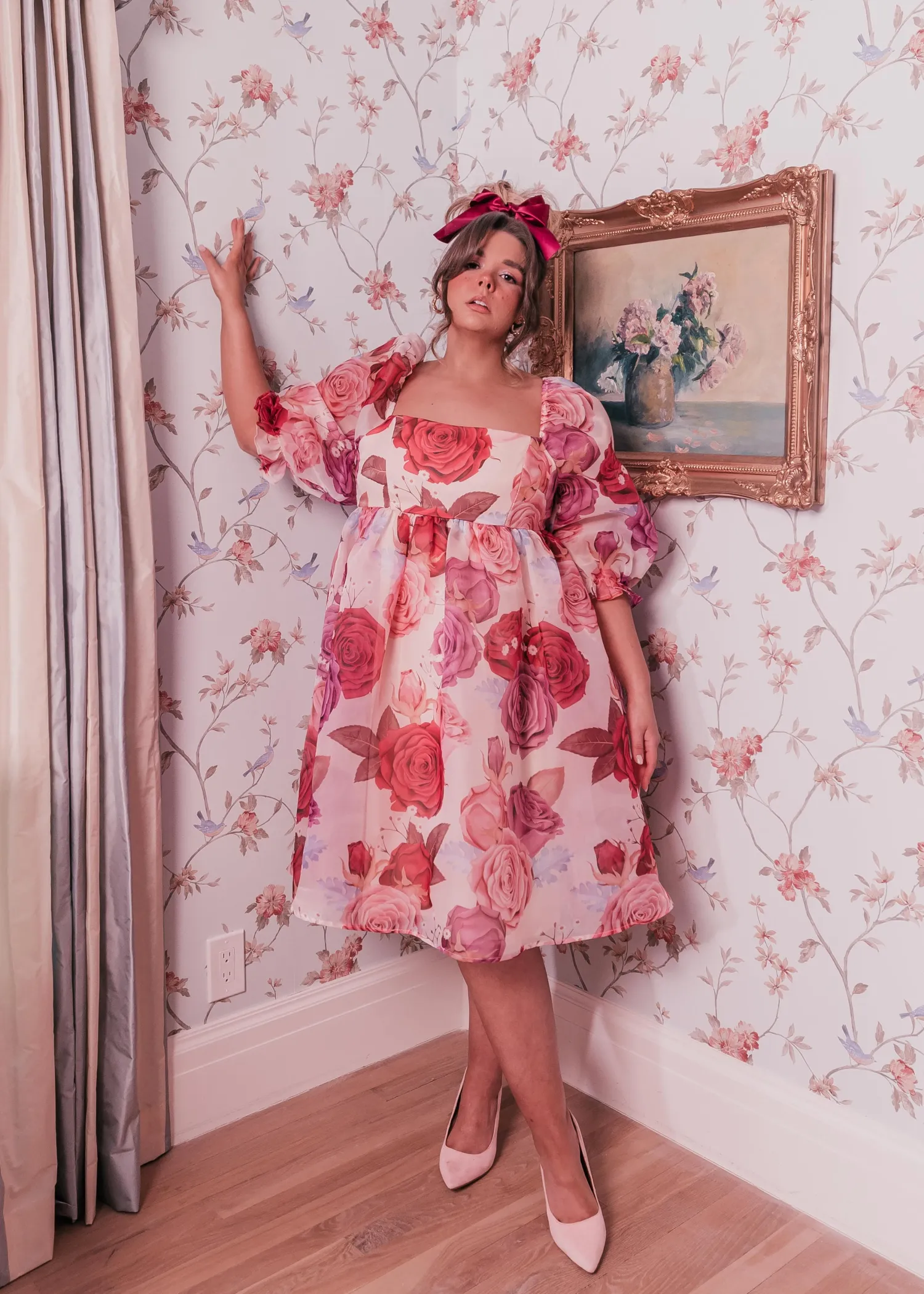 You'll look positively radiant in this rose floral print Polly mini babydoll dress. A flattering square neckline and hidden back zipper highlight the feminine shape, while elastic puff sleeves add a touch of whimsy to this modern silhouette.