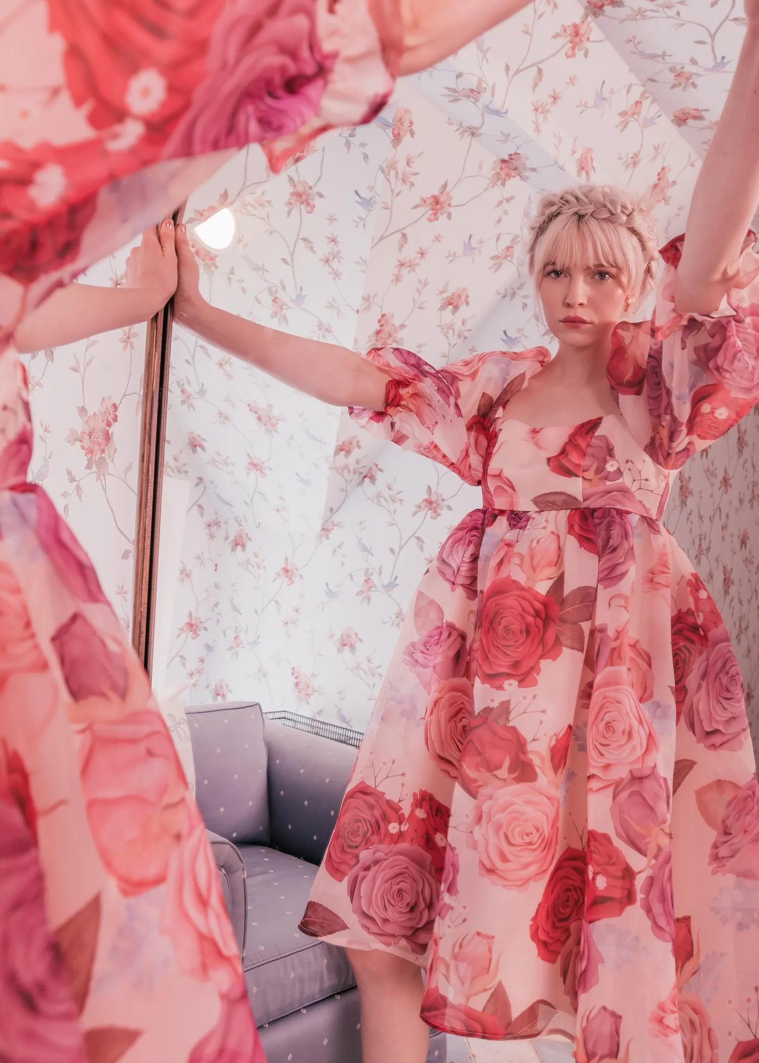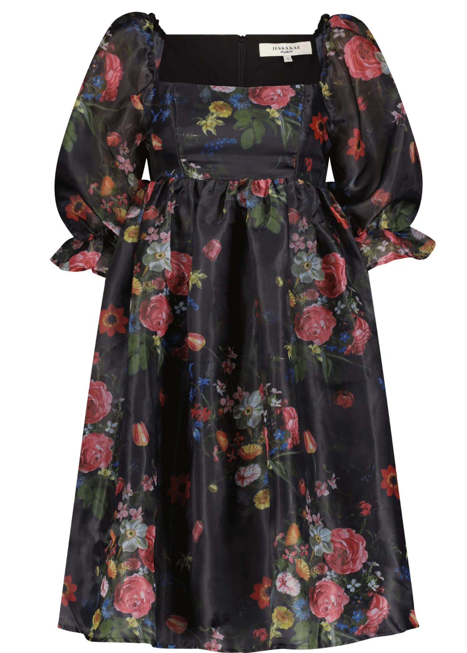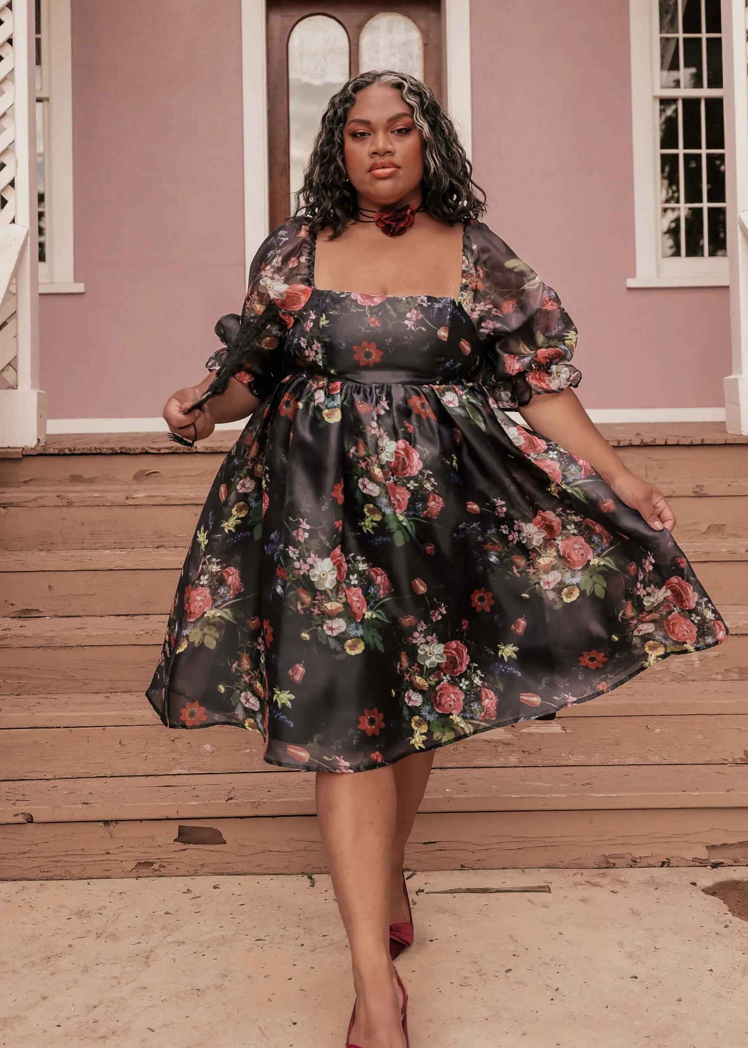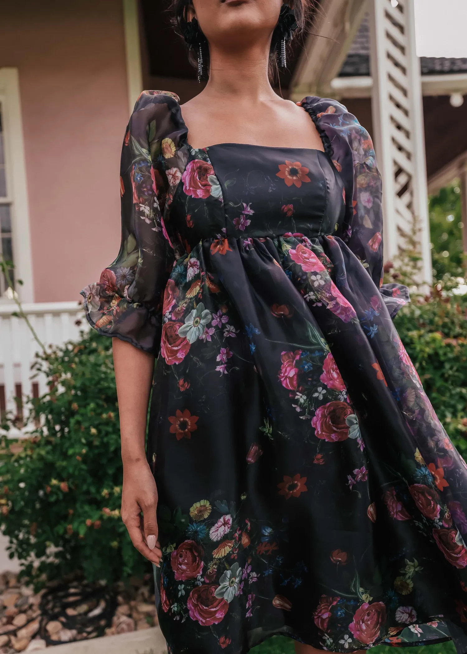 You'll look positively radiant in this rose floral print Polly mini babydoll dress. A flattering square neckline and hidden back zipper highlight the feminine shape, while elastic puff sleeves add a touch of whimsy to this modern silhouette.