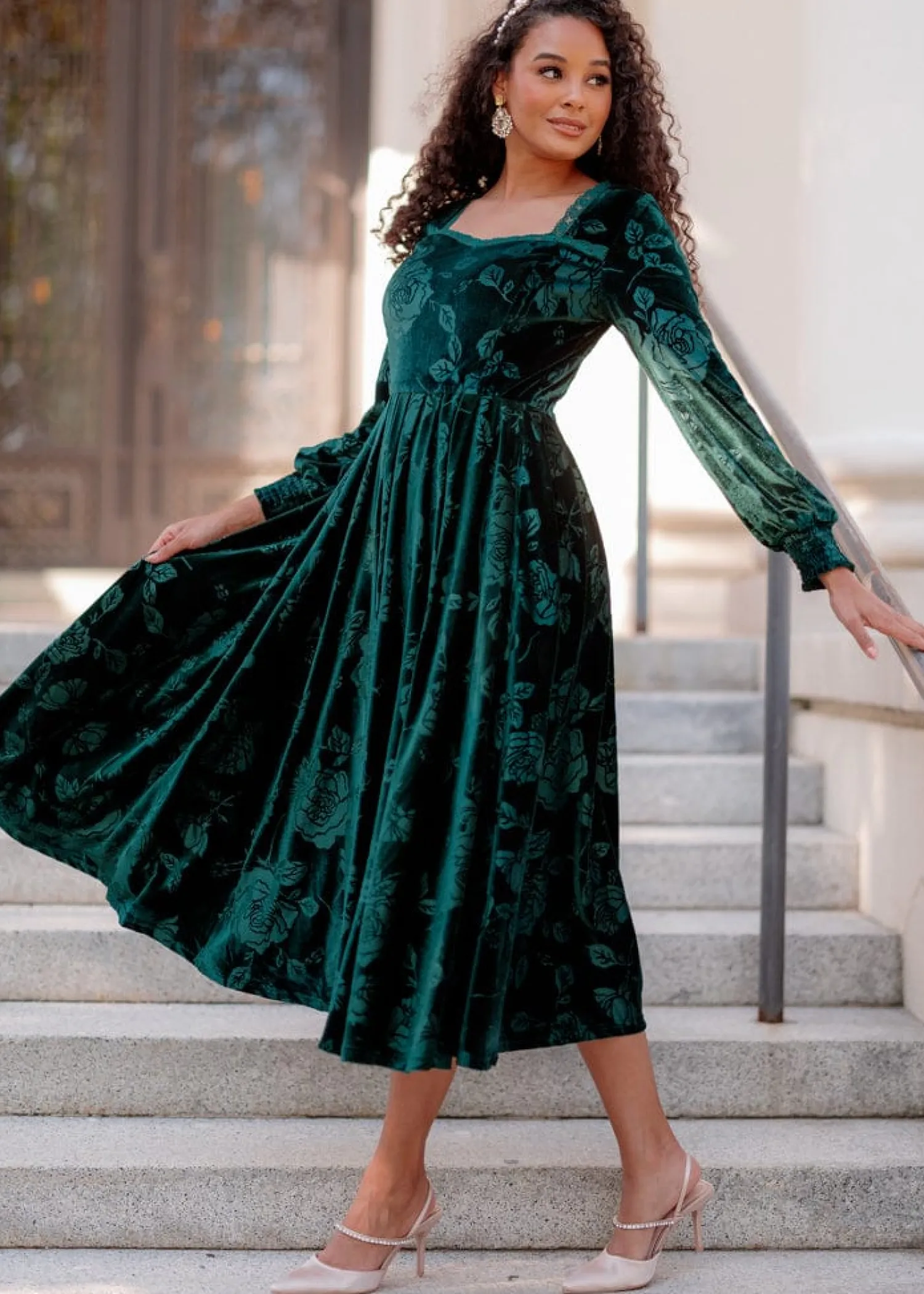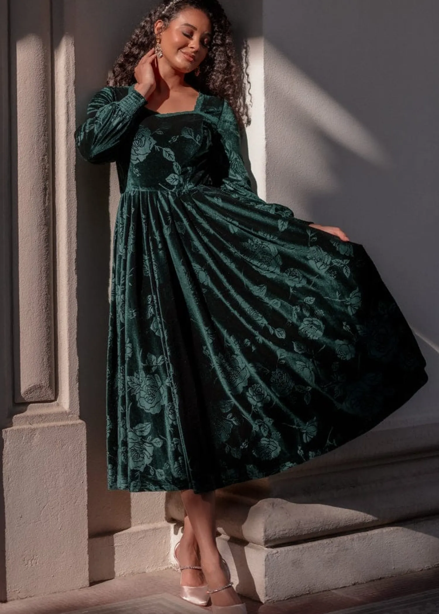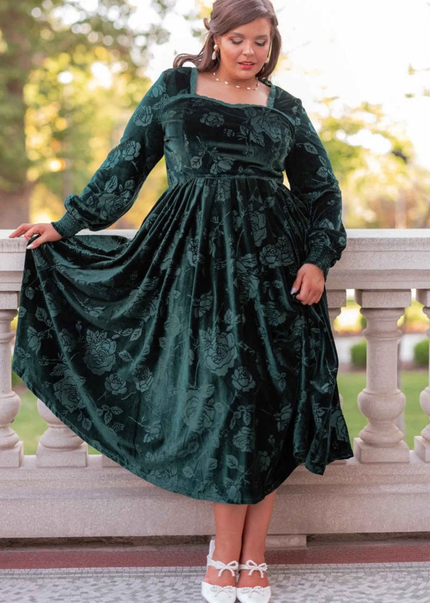 This gorgeous velvet dress is a showstopper for any event. The lace sweetheart neckline and soft floral accents are a perfect combination, while the inseam pockets add that extra level of style. This dress was made for you to look your best this holiday season!