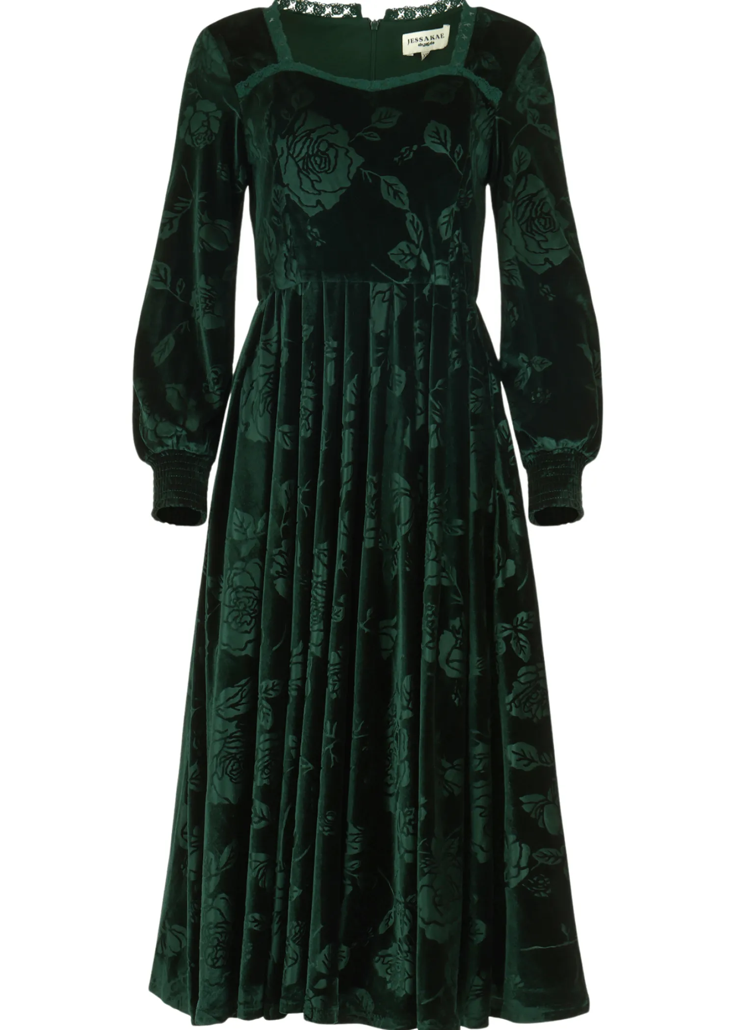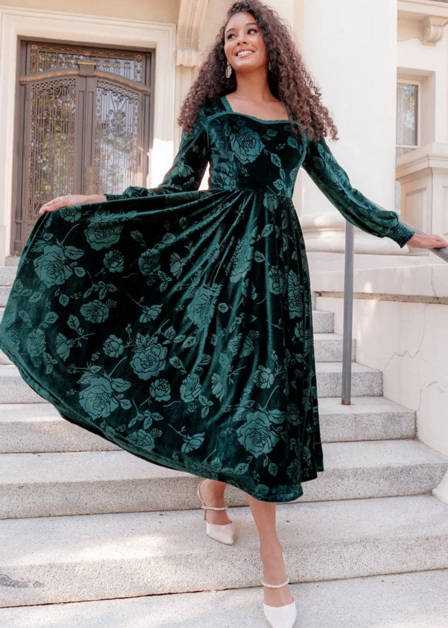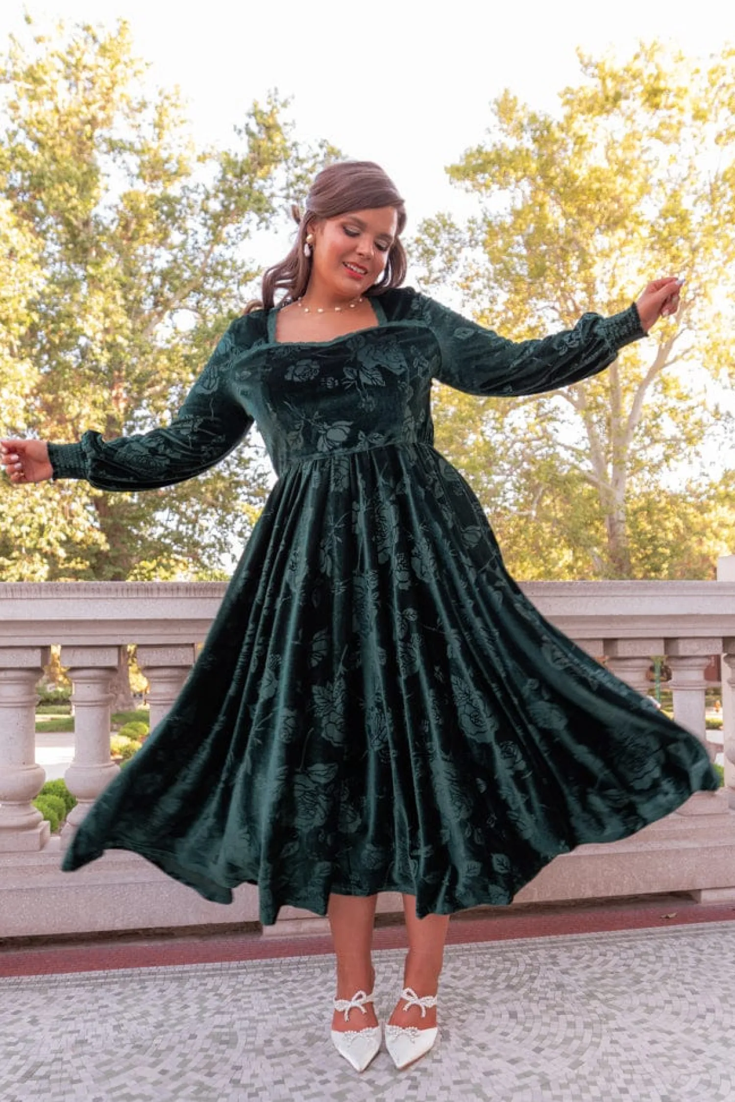 This gorgeous velvet dress is a showstopper for any event. The lace sweetheart neckline and soft floral accents are a perfect combination, while the inseam pockets add that extra level of style. This dress was made for you to look your best this holiday season!