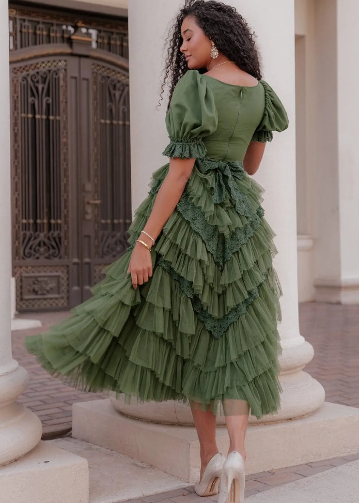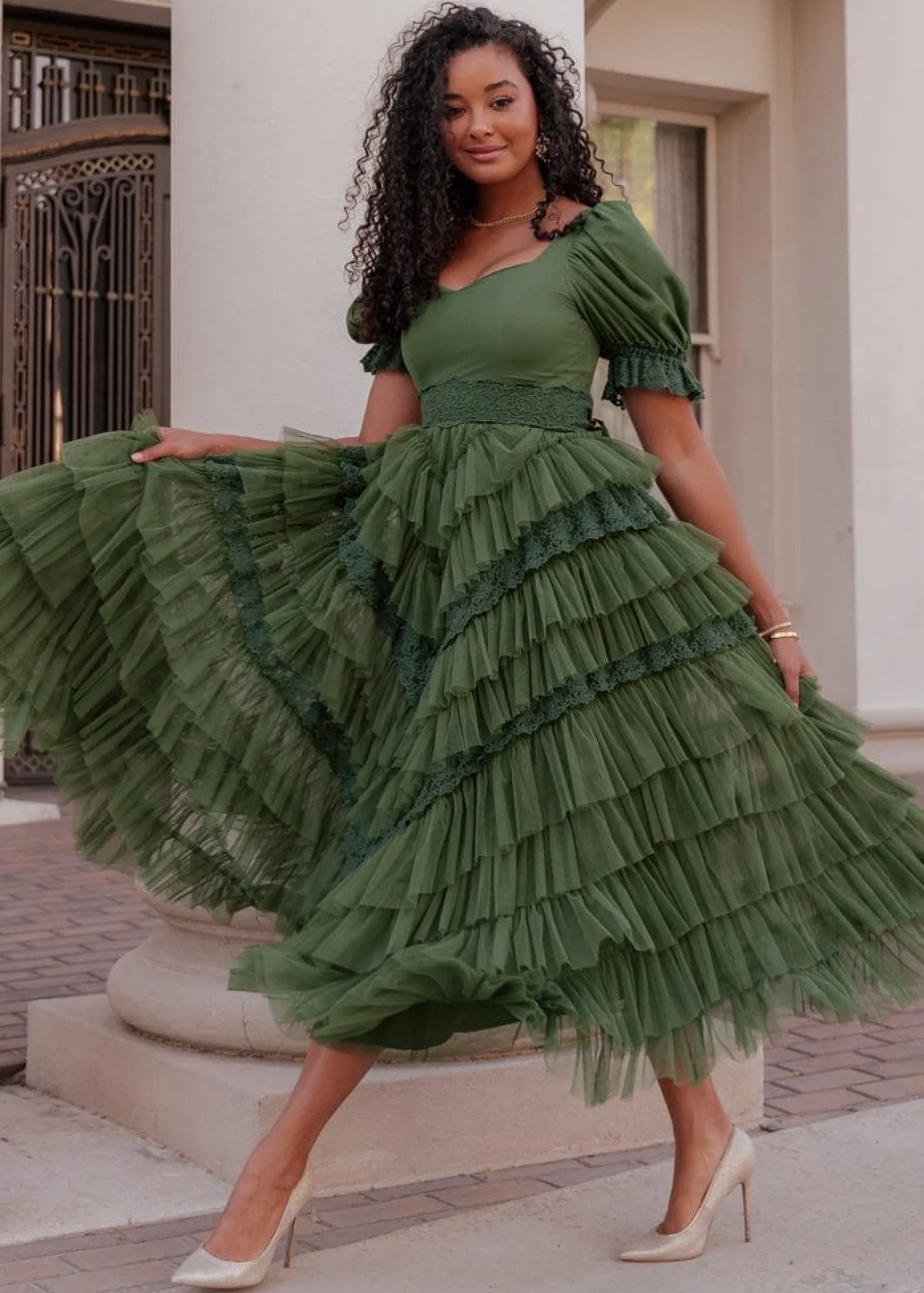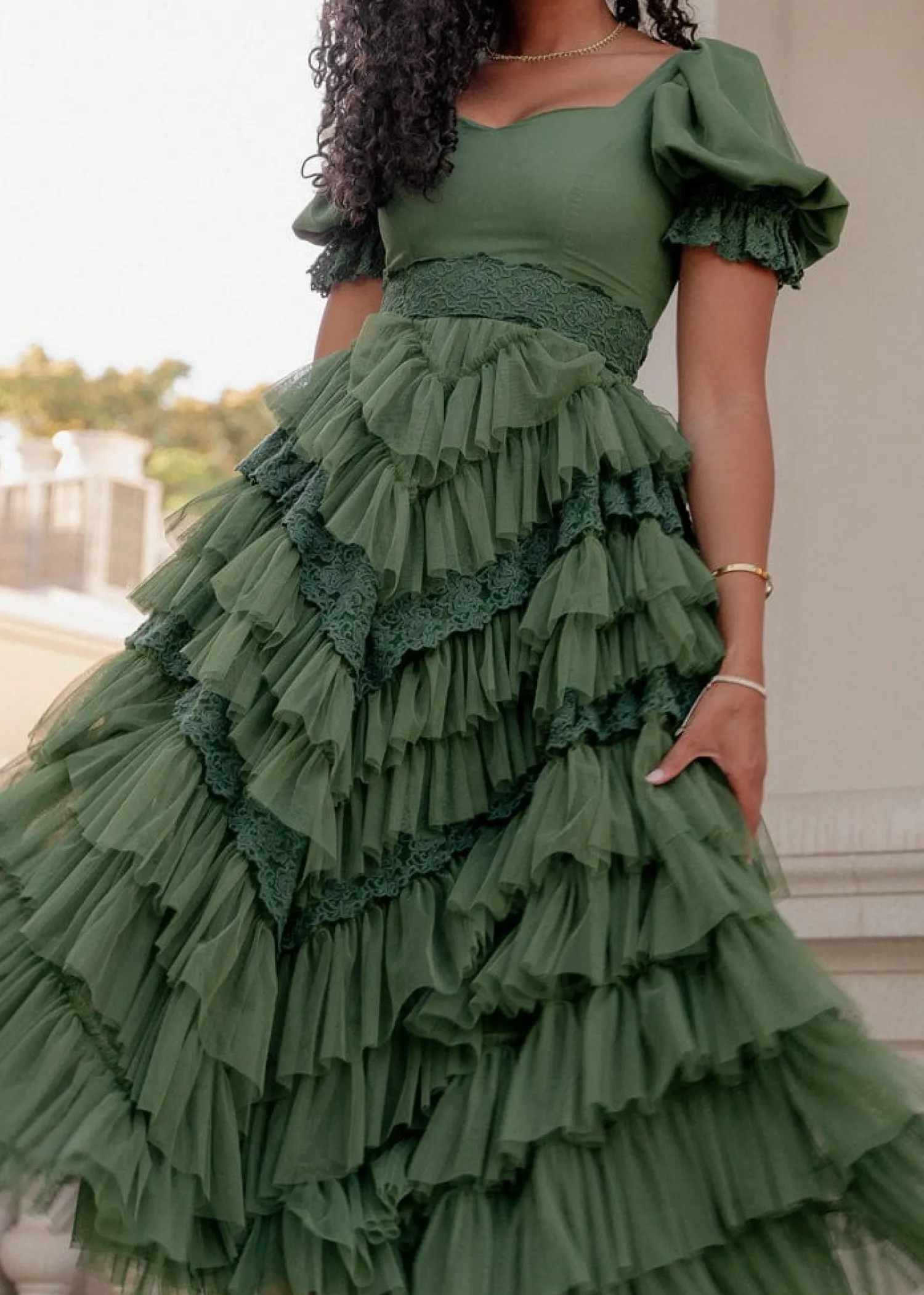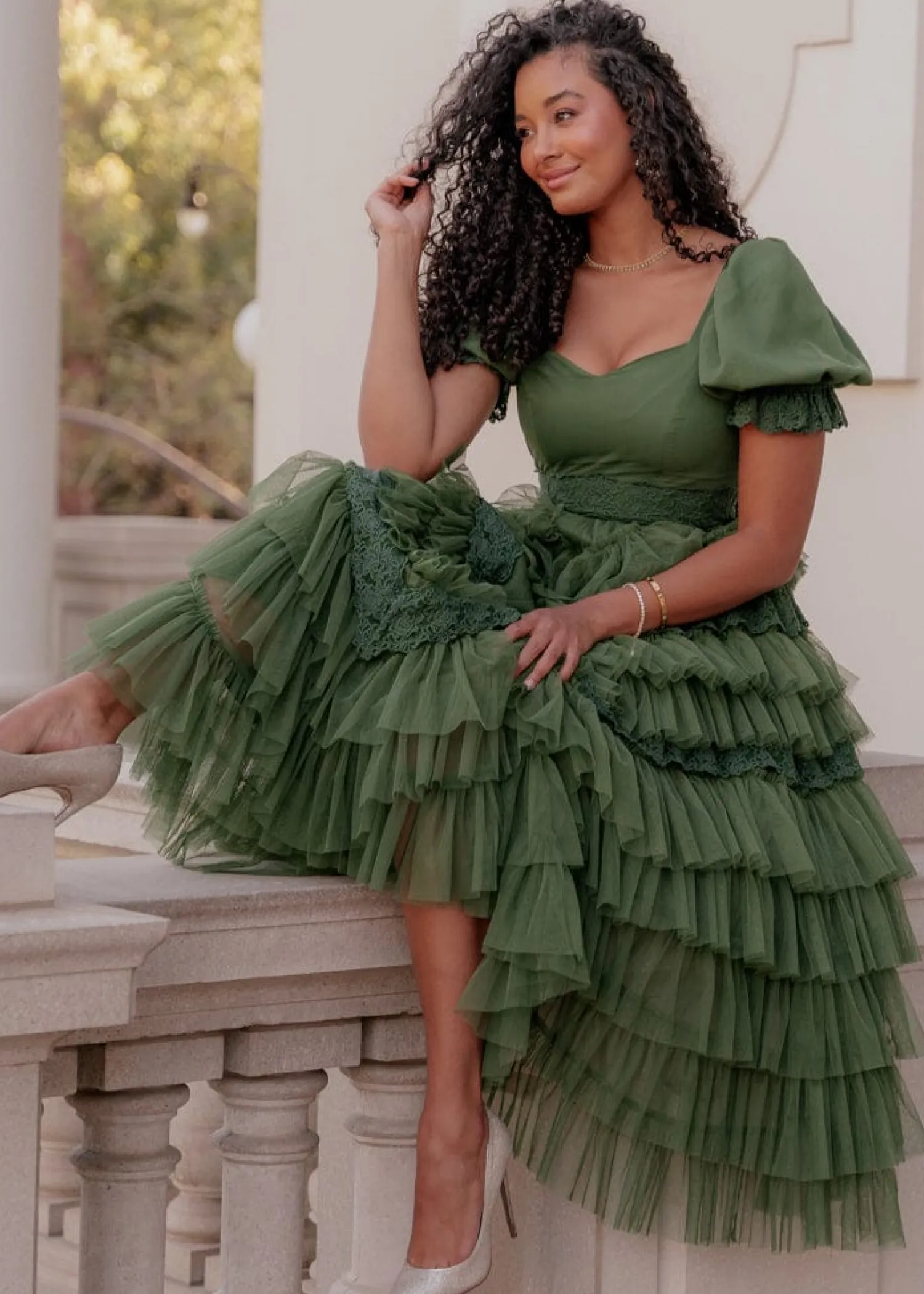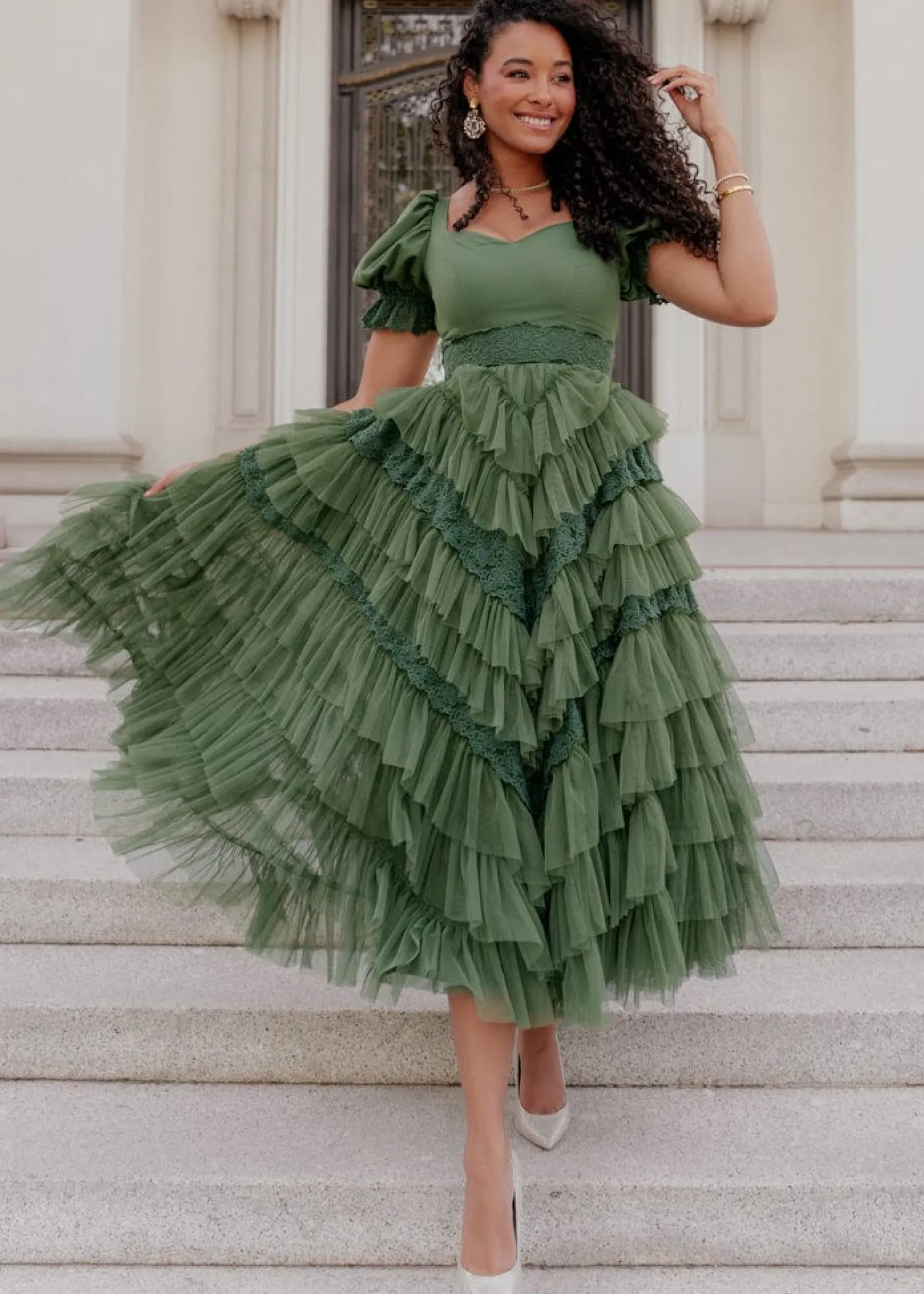 We've got a feeling you're going to fall in love with this one. The lace detailing adds a touch of vintage charm, while the flattering ruffle A-line skirt creates a feminine and flattering shape. Wear it to a wedding or any special occasion and you'll feel confident and beautiful.
