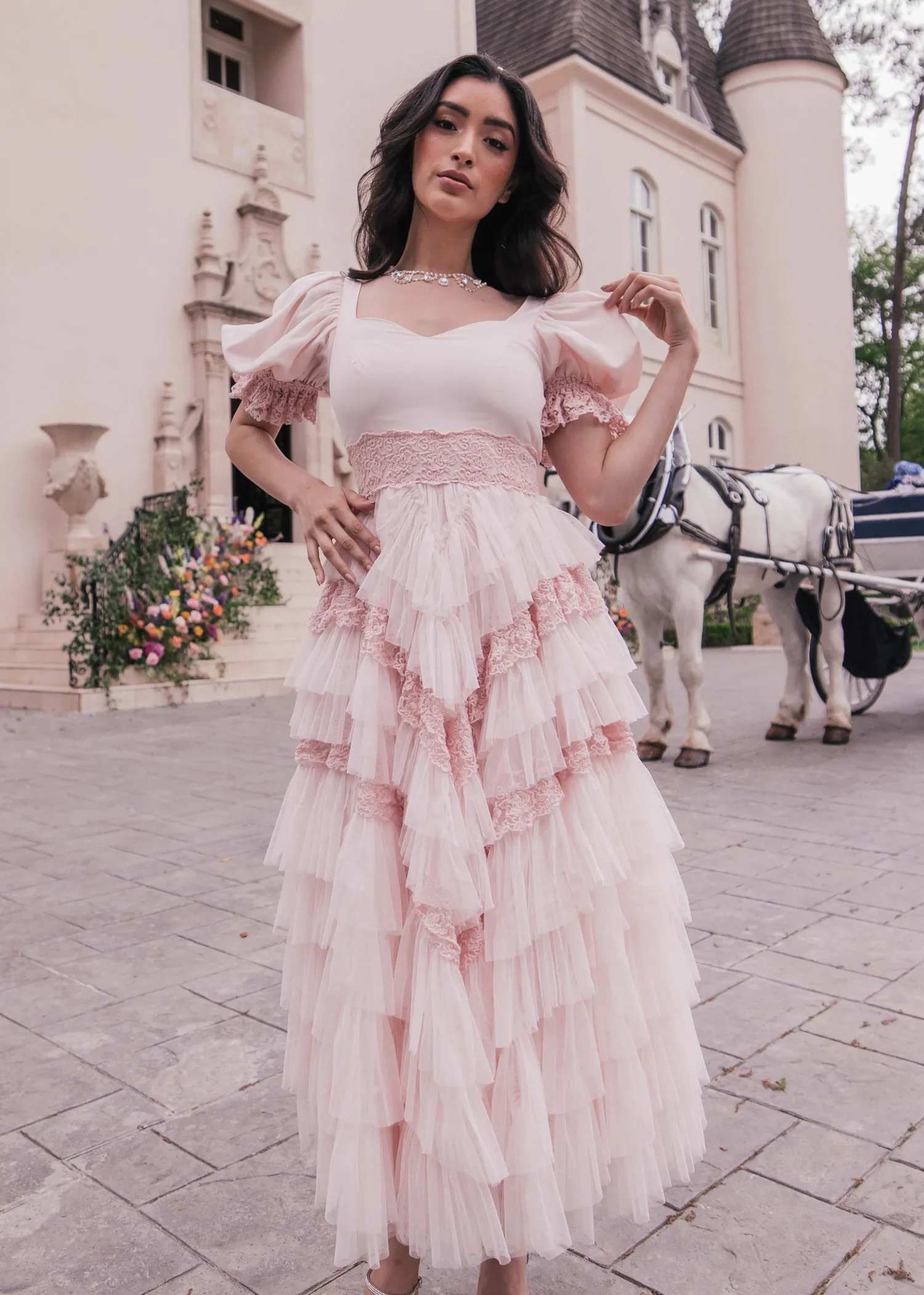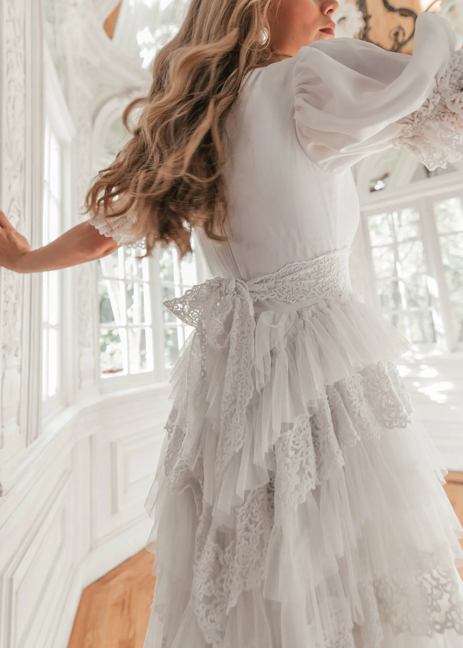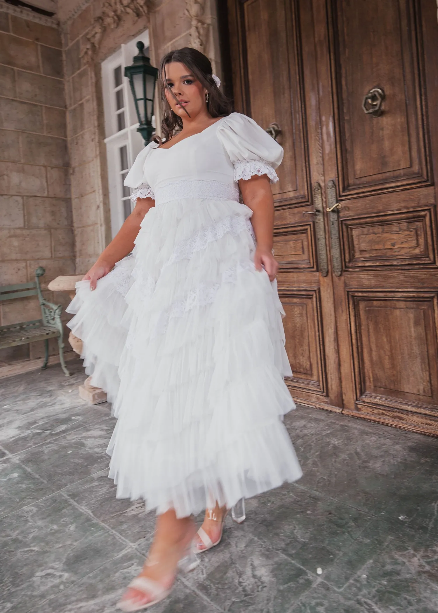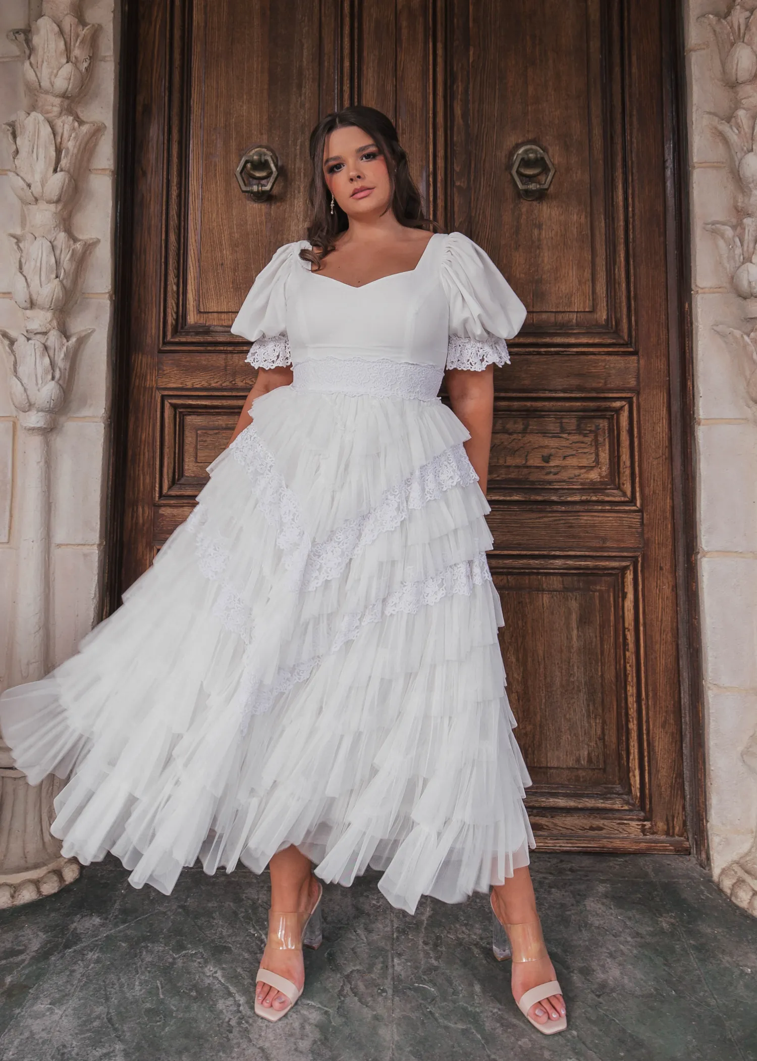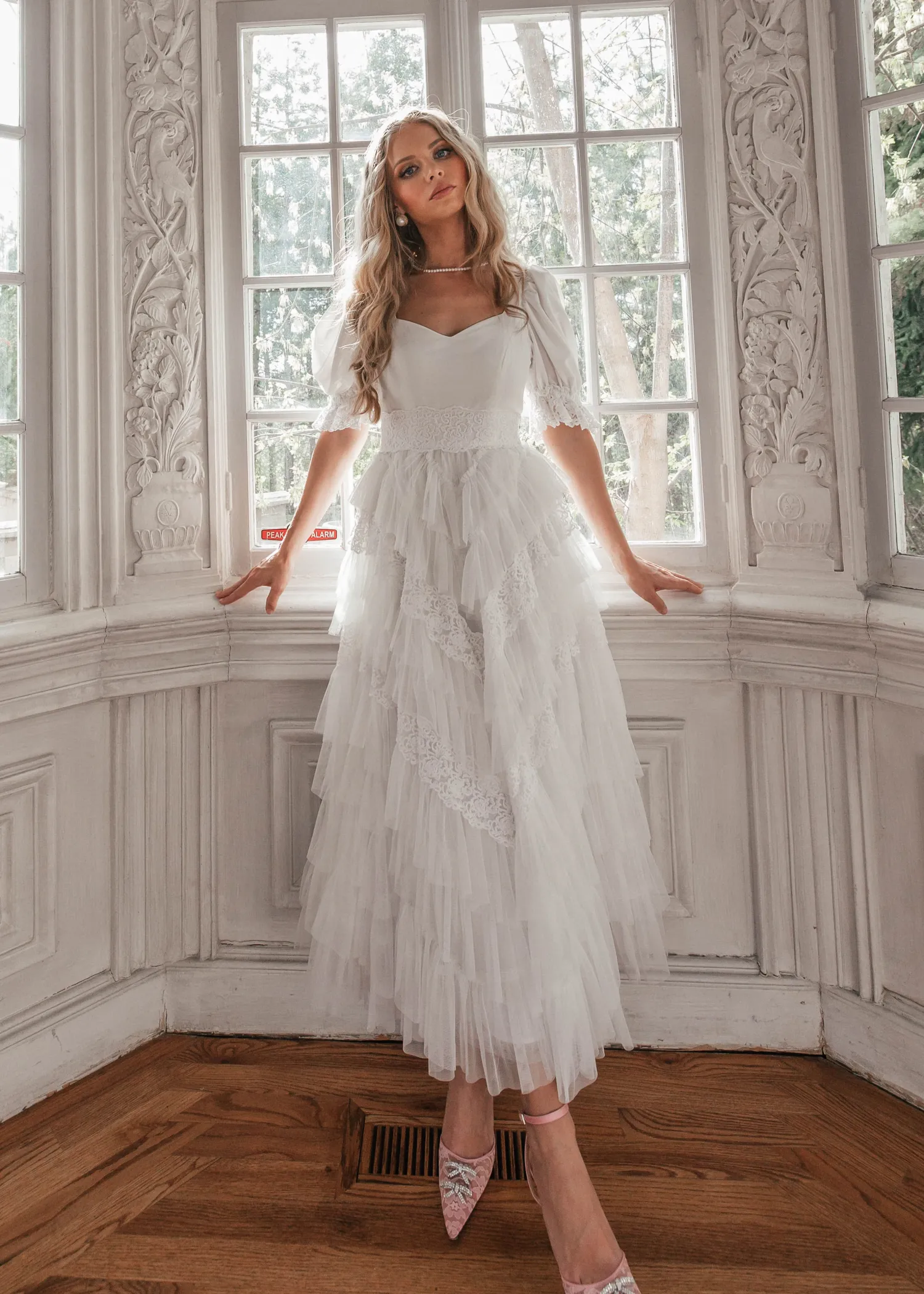 We've got a feeling you're going to fall in love with this one. The lace detailing adds a touch of vintage charm, while the flattering ruffle A-line skirt creates a feminine and flattering shape. Wear it to a wedding or any special occasion and you'll feel confident and beautiful.